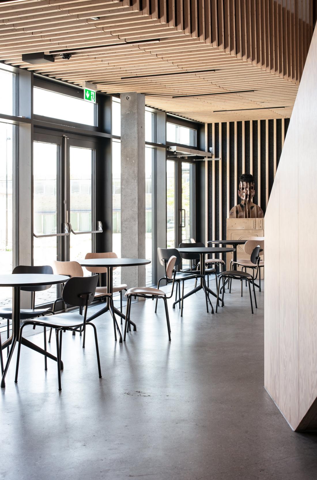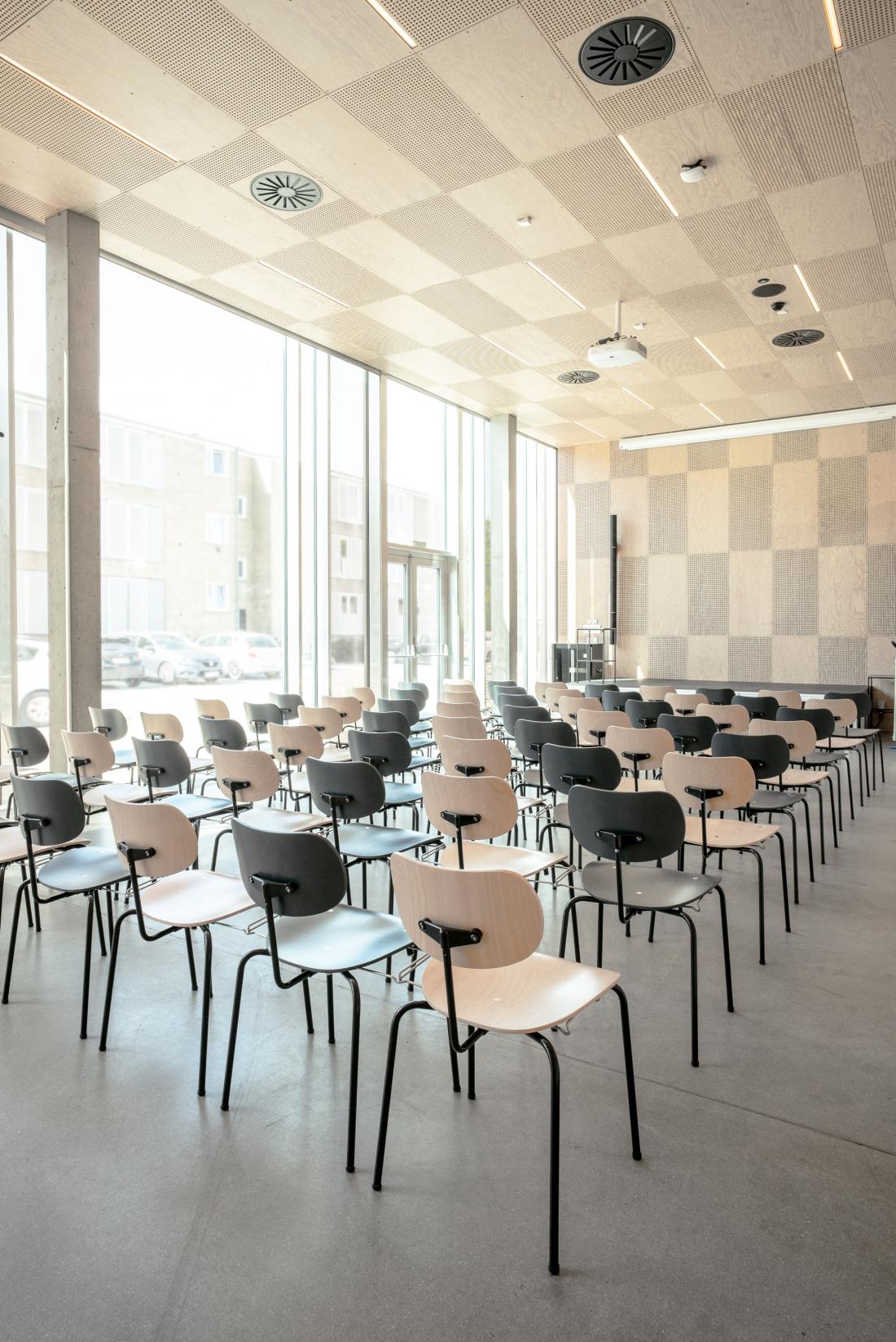 Das Tingbjerg-Kulturhaus ergänzt die Tingbjerg-Schule in Kopenhagen, Dänemark, als Gemeindezentrum für soziale und kulturelle Aktivitäten. Durch das Aufgreifen von Materialien, die für die Gebäude des Viertels typisch sind, und das Spiel mit den ästhetischen Eigenheiten des Viertels fügt sich der architektonische Entwurf von Cobe gut in das – vom Architekt Steen Eiler Rasmussen in den 1950er Jahren entworfene – historische Umfeld ein. Die geradlinige Innenarchitektur ist von modernen Materialien wie Beton, Glas und Holz bestimmt – die perfekte Umgebung für den Mehrzweckstuhl SE 68.